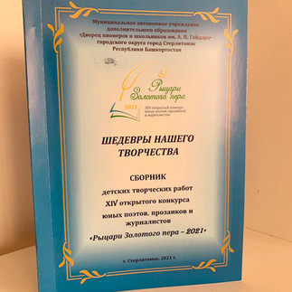 Сегодня Молодёжный Креатив-центр получил в подарок книгу: сборник детских творческих работ открытого конкурса юных поэтов, прозаиков и журналистов "Рыцари Золотого пера - 2021".